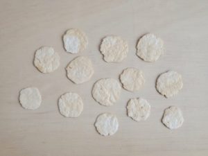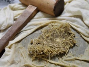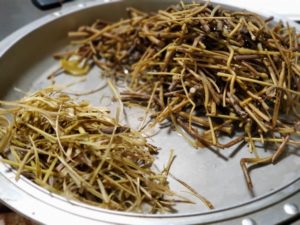 キクイモ。この前より外側の皮を細く裂いて叩いてみた。