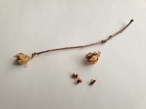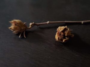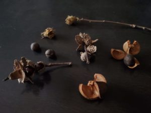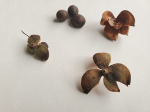 椎、山茶花の種、ムクゲ