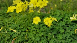 カタバミの花が今だーって咲いてる。