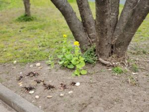 ドット落ちてないかなぁ~と思って木の周り探してみる。